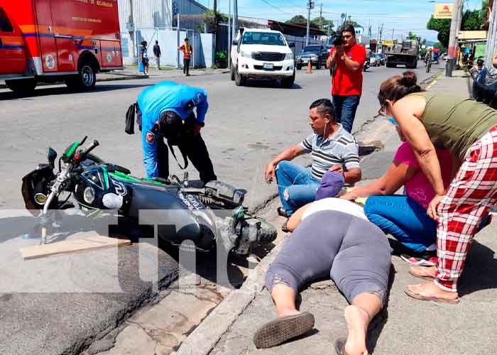 Frente al Palí del barrio Santa Ana, se registró un accidente de tránsito donde la ciudadana Rosa Nohemí Argeñal de 30 años de edad, fue impactada por una camioneta color blanco, con placa de Managua conducida por el ciudadano Wilfredo Juárez.