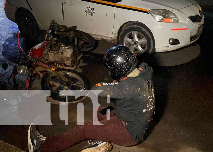 Un señor en Juigalpa resultó con golpes en diversas partes de su cuerpo; tras impactar la motocicleta que conducía contra el costado de un taxi. Ambos circulaban de Norte a Sur.
