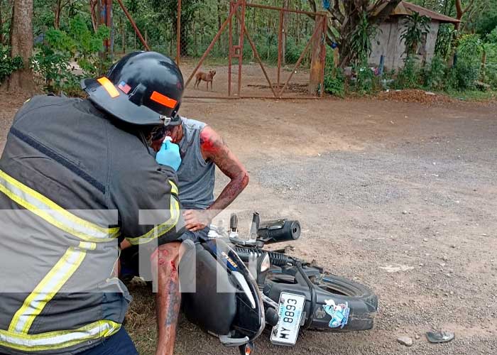 El joven motociclista identificado como Miguel Ángel Sandino sufrió un accidente de tránsito que por poco le quita la vida, sobre la carretera Catarina a Niquinohomo.