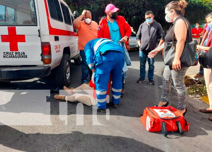 Jessica Raquel Lanuza Flores de 30 años, resultó con golpes en el cuerpo al impactar contra una camioneta, conducida por María José Sáenz Martínez, en el sector de Los Robles, Managua.