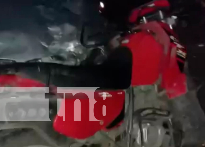Un fuerte accidente de tránsito se produjo en el km 176.5 sobre la salida de Santo Tomás hacia Juigalpa; cuando Pedro Mayorga de 27 años de edad; conductor del vehículo placa M 101 034 intentara aventajar; invadiendo el carril e impactando a la motocicleta conducida por Oneyker Calero de 21 años de edad; quien viajaba en compañía de la joven Maryeli Morales Flores de 18 años de edad.