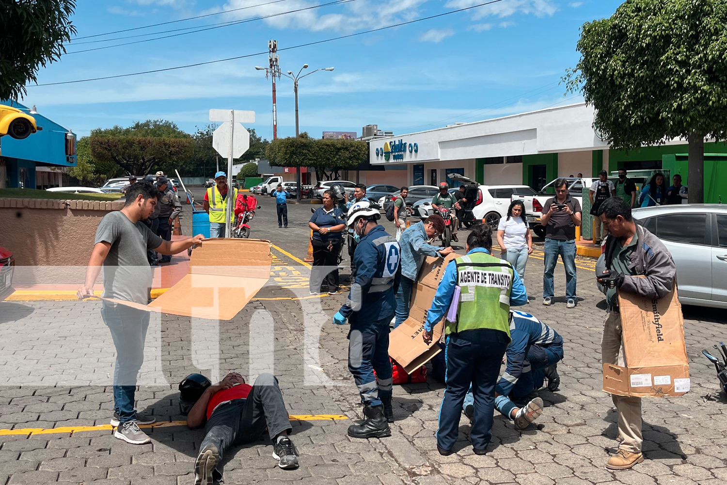 Un accidente de tránsito ocurrido en el sector de Camino de Oriente, Managua, entre un vehículo marca Hyundai gris, con placa M334-720, y una motocicleta Yamaha, placa M168-475, dejó como saldo dos personas heridas.