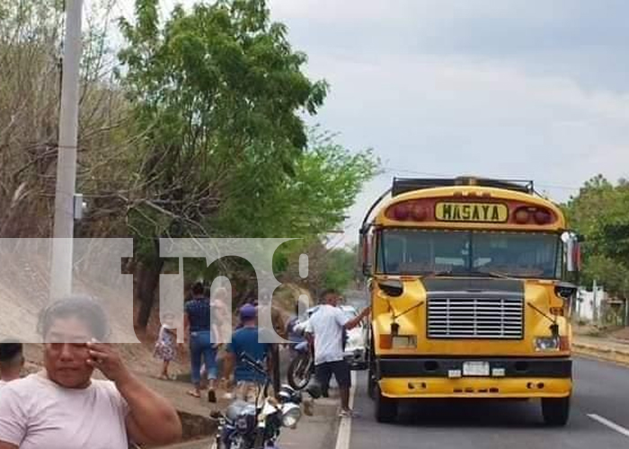 Según testigos, un bus que cubre la ruta Granada Masaya se detuvo en el sector de la entrada a esta comunidad para bajar a un pasajero.