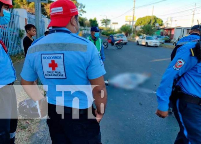 «Nos reportaron un accidente de tránsito, una motociclista y al llegar al lugar ya no se encontraba con signos vitales a causa del un trauma craneal y presenta una herida abierta en la parte occipital del cráneo«; expresó Abner Martínez, técnico de Cruz Roja Nicaragüense.