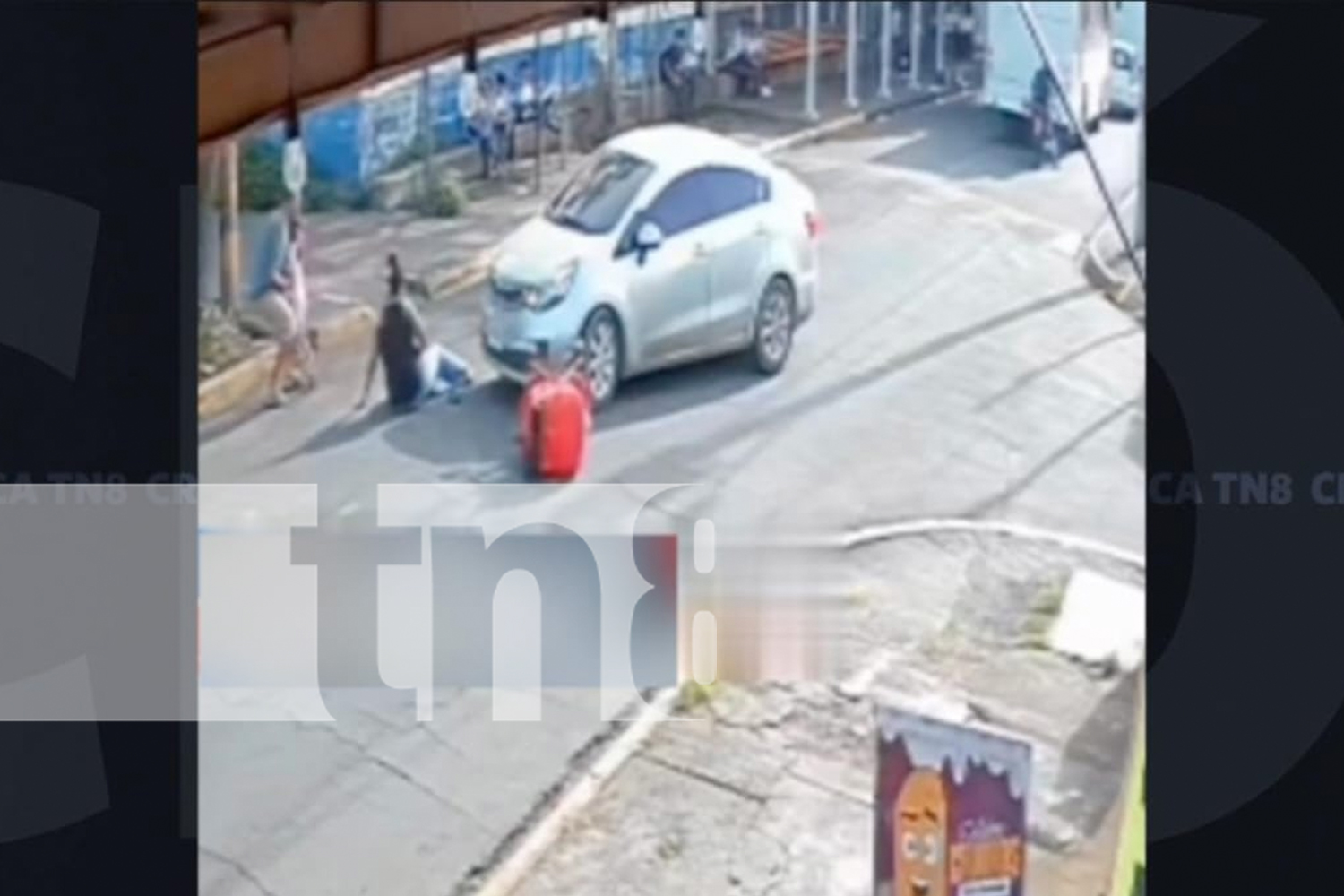 Por medio de un reporte ciudadano a la línea de WhatsApp de Crónica TN8 (78720008), se dio a conocer el caso de una mujer que transitaba por una de las calles del barrio 14 de Septiembre, Managua. Minutos después, fue atropellada, quedando a milímetros de las llantas delanteras de un vehículo gris.