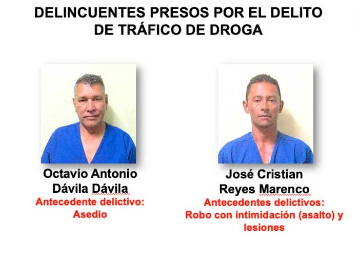 «Como resultados de la estrategia del Plan Muro de Contención contra el Crimen Organizado y Narcotráfico, ayer jueves 13 de abril 2023, a las 5:00 de la tarde, en casa de habitación ubicada en el barrio Pancasán, en el municipio San Isidro, departamento de Matagalpa, la Policía Nacional capturó a Octavio Antonio Dávila, de 65 años de edad y José Cristian Reyes Marenco, de 46 años; por el delito de tráfico de droga»; informó el comisionado mayor César Cuadra, segundo jefe de Relaciones Públicas de la Policía.