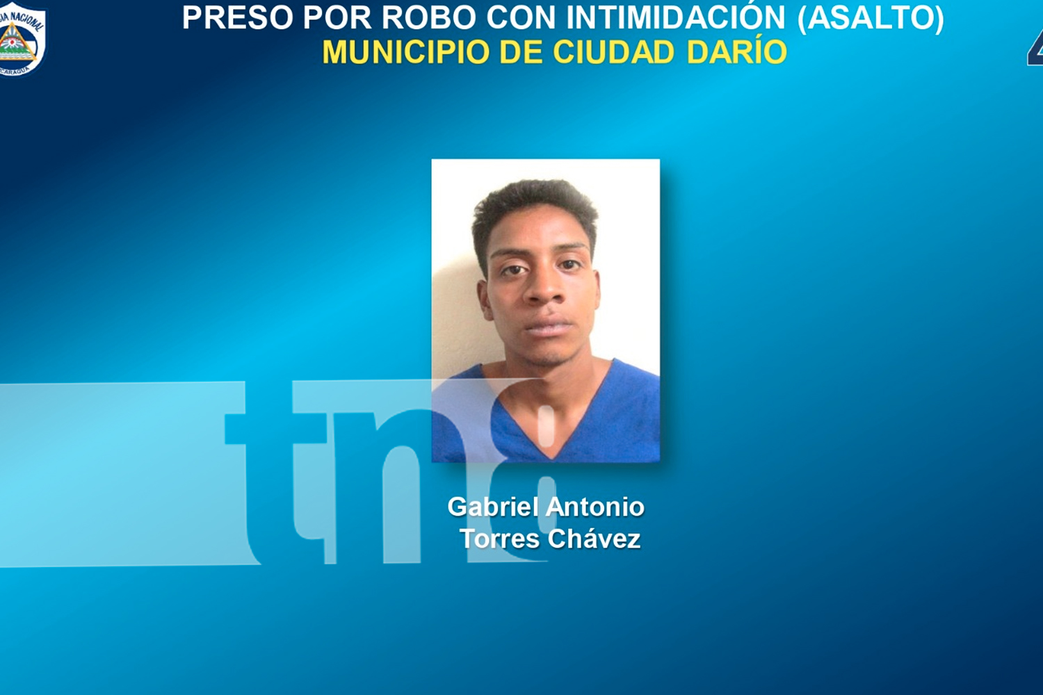 También fue capturado el sujeto Gabriel Antonio Torrez Chávez del municipio de Ciudad Darío, este es señalado de ser autor del delito de robo con intimidación tipo asalto.
