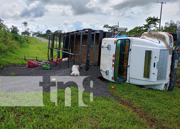 El camión, de color blanco y con placas RS 1612, se dirigía desde Managua a Bluefields cargado de piedrín negro, que quedó esparcido a un lado de la carretera donde el vehículo pesado volcó.