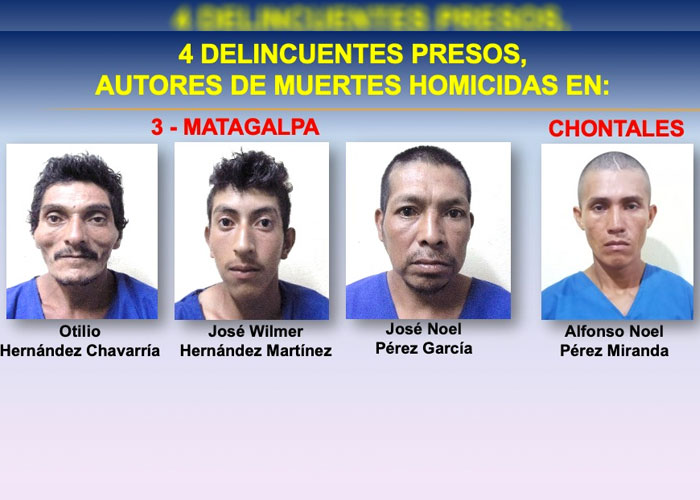 Fueron detenidos 52 delincuentes vinculados en asaltos y homicidios. Entre los detenidos por el delito de muerte están Otilio Hernández Chavarría y José Wilmer Hernández Martínez en el departamento de Matagalpa. También José Noel Pérez García y Alfonso Noel Pérez Miranda en Chontales.
