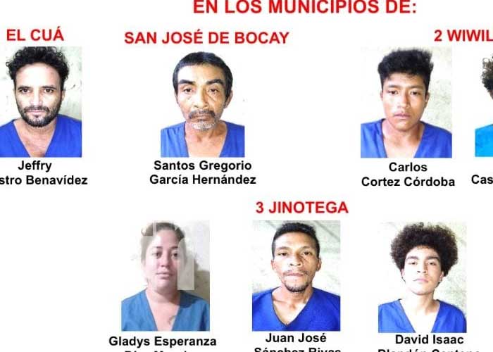 La Policía Nacional en el departamento de Jinotega dio a conocer a los presuntos delincuentes capturados durante la reciente semana pasada en el departamento; a través de una conferencia de prensa brindada en la delegación policial Germán Pomares.