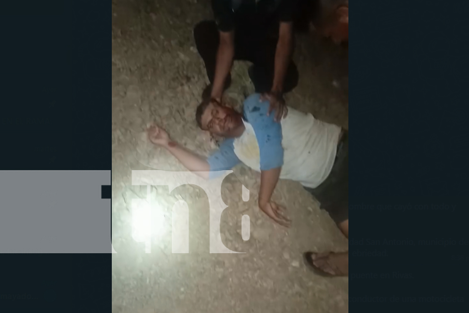 En estado grave fue trasladado a un centro hospitalario, el conductor de una motocicleta que cayó al fondo de un puente en construcción en Rivas.
