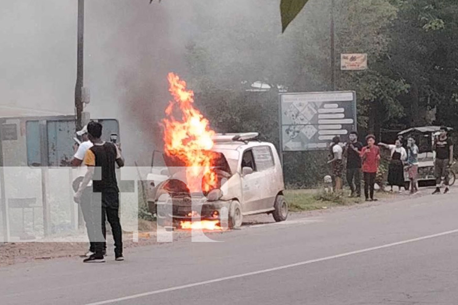 En Chinandega asustado quedó el conductor William Hernández Martínez de 32 años de edad, esto luego de ir en un carro color blanco, placa CH-18119 y terminar prendido en llamas el vehículo por un posible desperfecto mecánico.