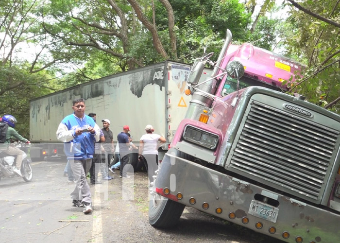 Al mediodía de este jueves, se registró un accidente de tránsito al norte de Estelí, donde el conductor de una rastra perdió el control del vehículo pesado; impactando contra unos árboles y arrasando con una motocicleta.