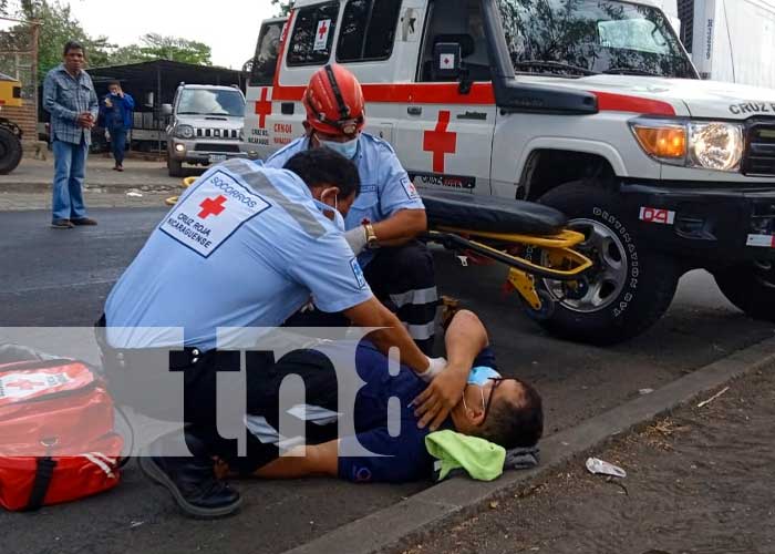 Con una posible fractura de clavícula y un trauma de tórax, resultó el motociclista Pablo José Jarquín Amador, de 38 años; al colisionar en la parte trasera de un vehículo. El hecho se dio la mañana de este viernes, en los semáforos de la Quinta Nina, Distrito I, Managua.