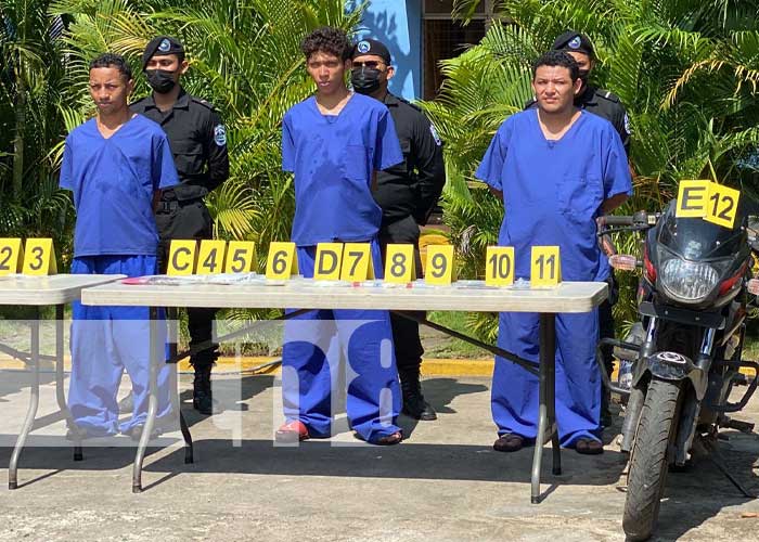 Entre los detenidos se encuentran Cristhian José Velásquez y Elbert Ramiro Munguía Picado; a quienes les acusan de un robo con intimidación en perjuicio de un ciudadano; a quien amenazaron con arma cortopunzante y lo despojaron de sus pertenencias. A estos se les ocupó una motocicleta.