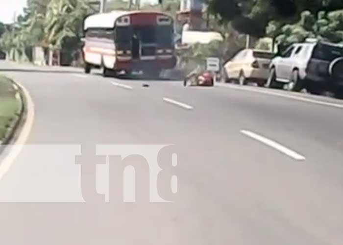 #AHORA #Nicaragua | Mujer cae violentamente de un bus en marcha en la carretera Nueva a León.