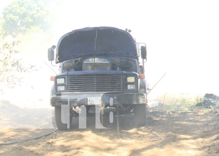 Benemérito cuerpo de bomberos trabajo arduamente en controlar un siniestro en el basurero ubicado en el km 6.5 carretera vieja a León, comarca Nejapa; hecho en el que resultó afectado el conductor de un camión y su medio de transporte pesado.
