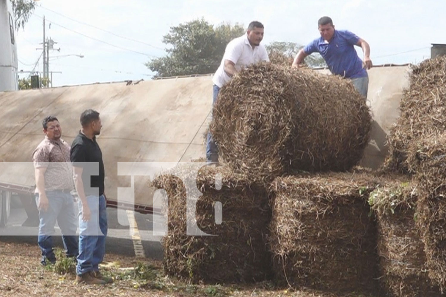 En horas de la mañana del martes 31 de diciembre de 2024, el conductor de una rastra que transportaba varias pacas de alimento para ganado terminó volcando en la carretera que dirige hacia la Reserva Protegida de Miraflor, en Estelí.