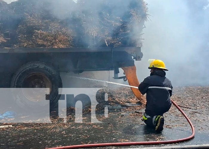 El conductor de la rastra con cabezal marca Freightliner, con placa M390 912, de nombre Jimmy Antonio Silva Espinoza, dijo que repentinamente las pacas de caña que transportaba desde Chinandega con destino al Ingenio CASUR agarraron fuego.