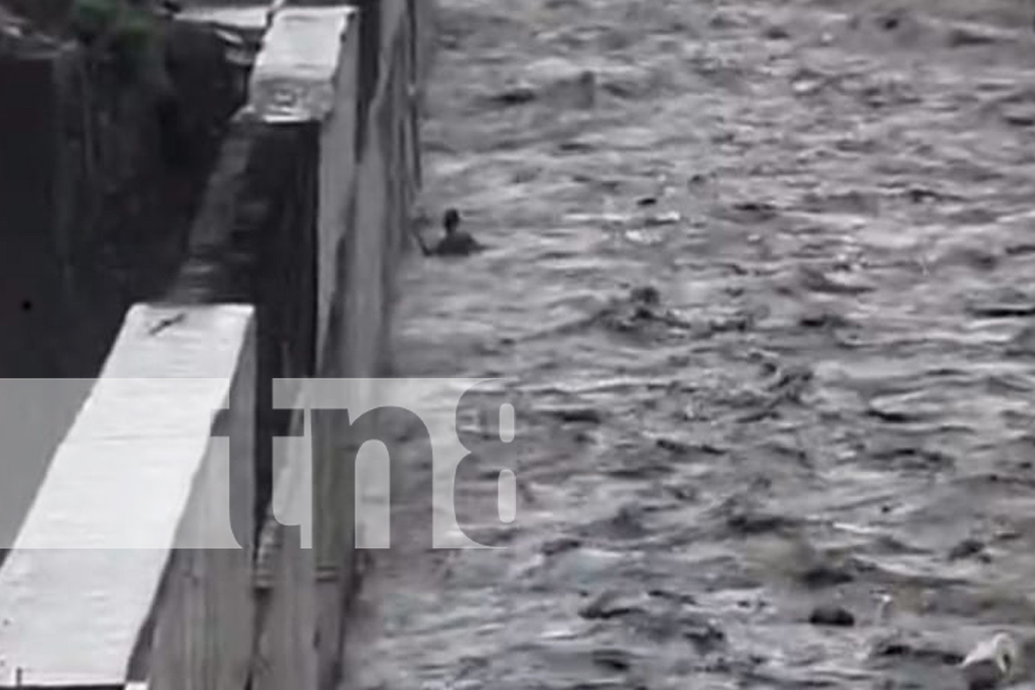 En otro material audiovisual, se muestra a pobladores y equipos de emergencia que se encontraban en el puente del barrio Pedro Joaquín Chamorro, del distrito IV. Según informes preliminares; al joven se le rescató en ese punto y luego fue trasladado en condición crítica al Hospital Alemán Nicaragüense.