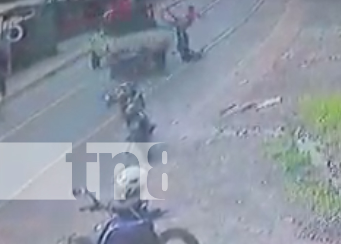 Grabado en una cámara de seguridad de un local en Wapí jurisdicción del municipio El Rama, quedó registrado un accidente de tránsito que dejó como resultado 7 personas lesionadas.