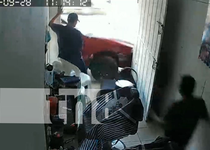Bastaron segundos para que uno de ellos se levantara del lugar donde se encontraba sentado. La mujer que caminaba junto al menor avanzaron unos cuántos pasos cuando un vehículo impacto brutalmente en la entrada a dicha barbería salvándose por segundos los trabajadores del establecimiento y la mujer que caminaba junto al menor sobre el bulevar.