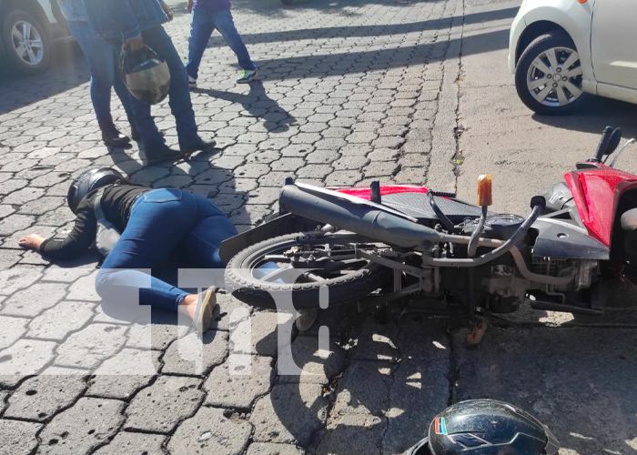 El tratar de esquivar un taxi fue la supuesta causa que provocó que una joven motociclista y su acompañante sufrieran un accidente. El hecho se registró de los semáforos de Villa Fontana media cuadra hacia abajo, en Managua.