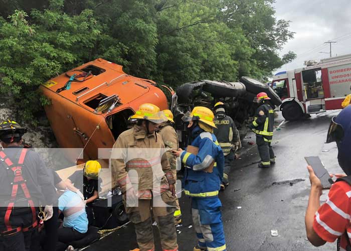 Con la sirena activada y a toda velocidad; Bomberos Unidos de Nicaragua se movilizaron a verificar un fuerte accidente en el sector de la peligrosa Cuesta El Plomo en Managua.