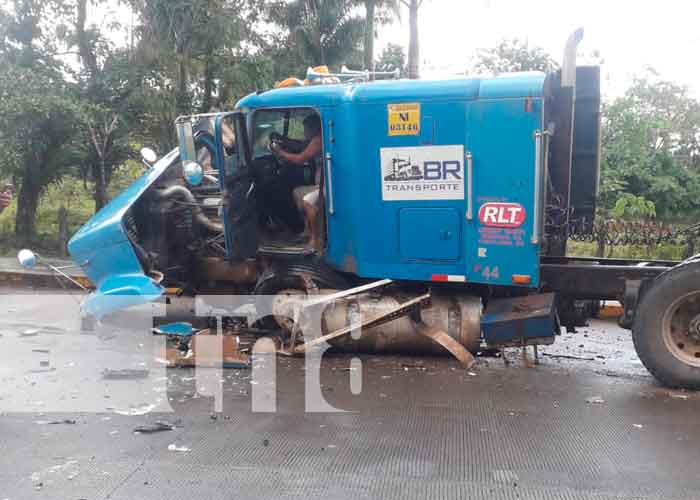 El fuerte choque casi frontal entre el cabezal, y la camioneta roja conducida por Ismael Angulo; dejó como resultado una persona con lesiones en diversas partes de su cuerpo.