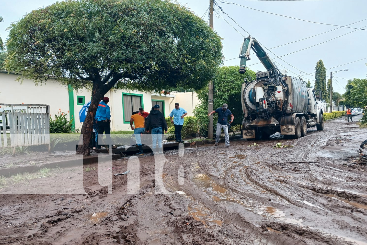 Notificaron de emergencia, el COMUPRED se activó de inmediato para brindar acompañamiento solidario, drenaje y limpieza al Residencial San Sebastián, Managua.