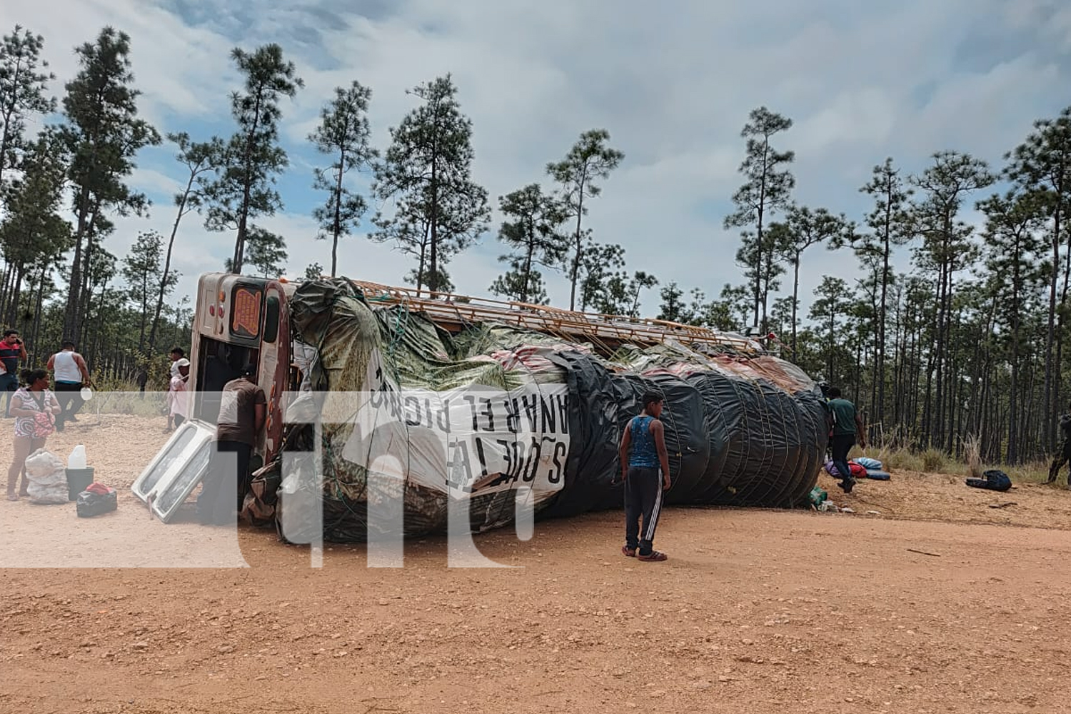 Esta mañana, el autobús de la empresa Mama Reyna, que cubría la ruta Managua-Waspam, sufrió un aparatoso volcamiento en las cercanías del basurero de Waspam.