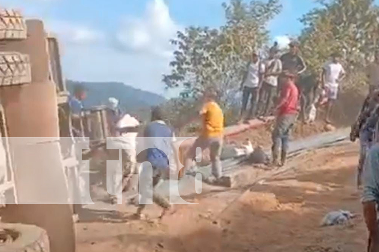 Camión con pasajeros y materiales se vuelca en Wiwilí