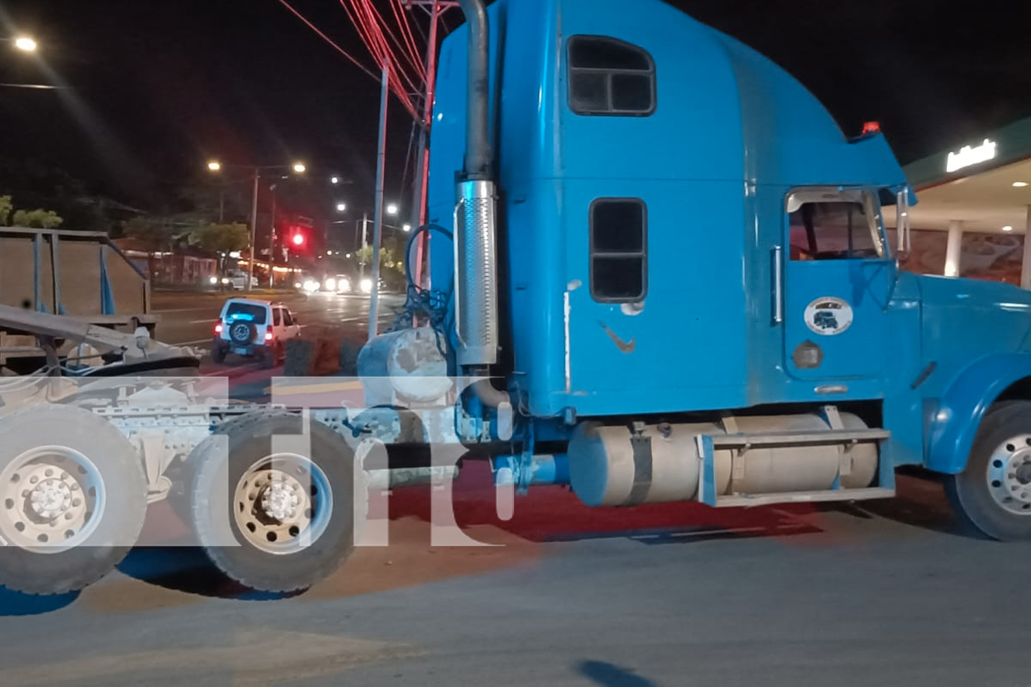 La noche de este miércoles se registró un aparatoso accidente en la entrada de la gasolinera Las Mercedes, luego de que un tráiler que transportaba arena volcara su remolque al intentar ingresar al establecimiento.
