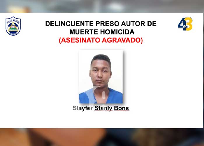 En una conferencia de prensa, el comisionado mayor Juan Manuel Chávez Chávez, jefe de la delegación policial de Bilwi y Waspam, presentó a Slayfer Stanly Bons de 20 años de edad; acusado por asesinato agravado en perjuicio de un menor de dos años de edad identificado con iniciales R.S.H.