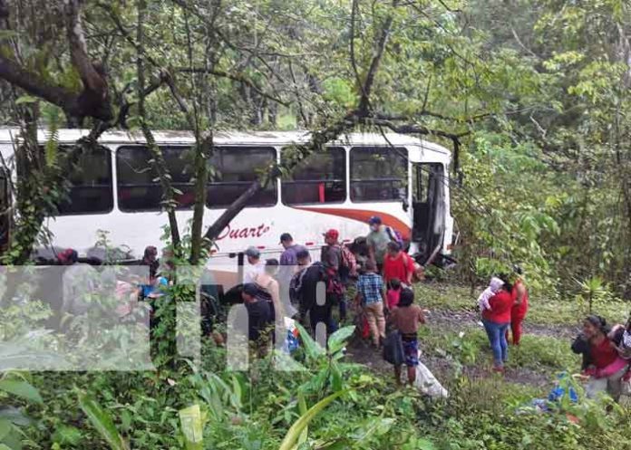 Al menos 5 personas que viajaban como pasajeros del bus de transporte colectivo Duarte resultaron con golpes en distintas partes de su cuerpo. La causa es que el conductor aparentemente perdió el control producto del pavimento mojado debido a las últimas lluvias caídas. El bus se salió de la vía yéndose hacia un precipicio en Villa Sandino, Chontales.
