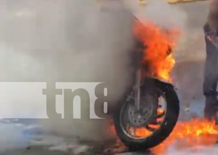 Una moto en llamas no es algo que se vea todos los días, pero sí algo que puede suceder. A pie y solo con el casco, tuvo que regresar a su casa, el conductor de una motocicleta, después que esta se incendiara, cuando se movilizaba en dirección oeste-este, en las cercanías del barrio El Edén, en Managua.