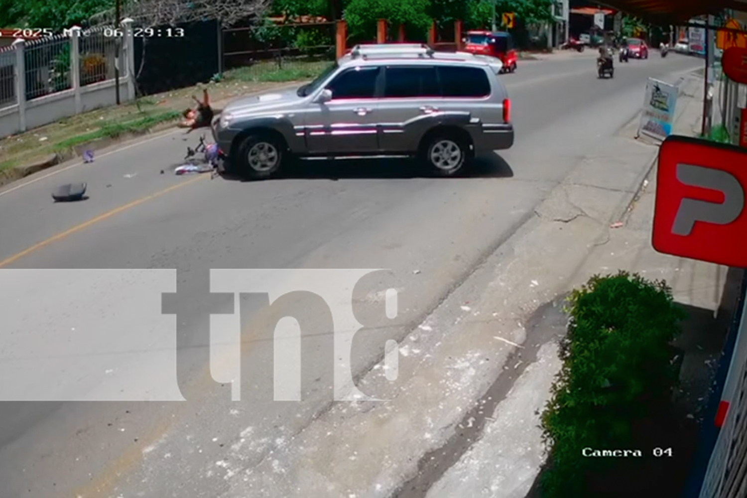 #AHORA | Un accidente de tránsito quedó registrado por las cámaras de seguridad de una vivienda ubicada en la carretera a Veracruz.#Nicaragua pic.twitter.com/PtTRHR0pge