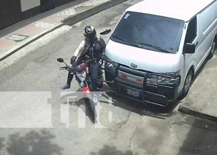 #AHORA | Las cámaras de seguridad instaladas en la vivienda captaron el momento exacto en que un joven, a bordo de su motocicleta, impacta contra el espejo retrovisor del lado derecho de un camioncito blanco estacionado frente a la casa.#Managua pic.twitter.com/D8zCchj5WP