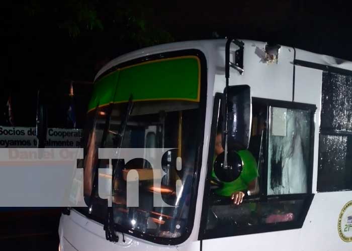 Los pasajeros de esta unidad de transporte urbano colectivo de Managua, cuando vieron lo sucedido, gritaron del miedo; ¡por dicha se salvaron de que les dé un paro cardíaco!.