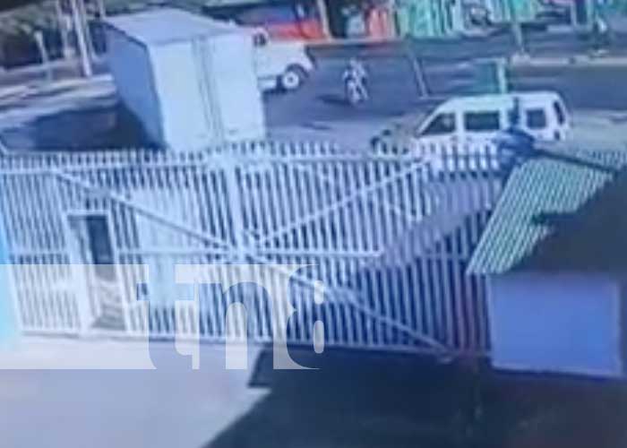 En una cámara de seguridad se captó el momento trágico en el que un motociclista fue arrastrado y posteriormente aplastado por las pesadas llantas de un tráiler, en el sector de La Kativo, kilometro 8 de la Carretera Norte, Managua.