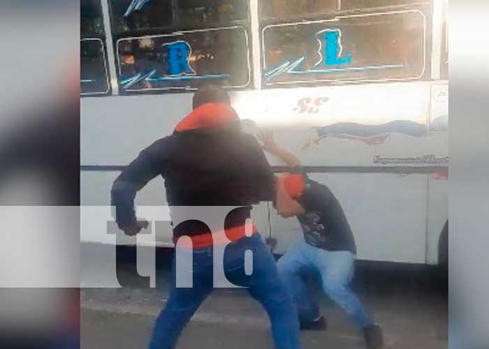 Conductor de la Ruta 117 de Managua se hace viral cuando agresivamente retrocede su bus para impactar a un taxi; luego el conductor de este reacciona violentamente y en plena vía pública arreglan sus diferencias a golpes.
