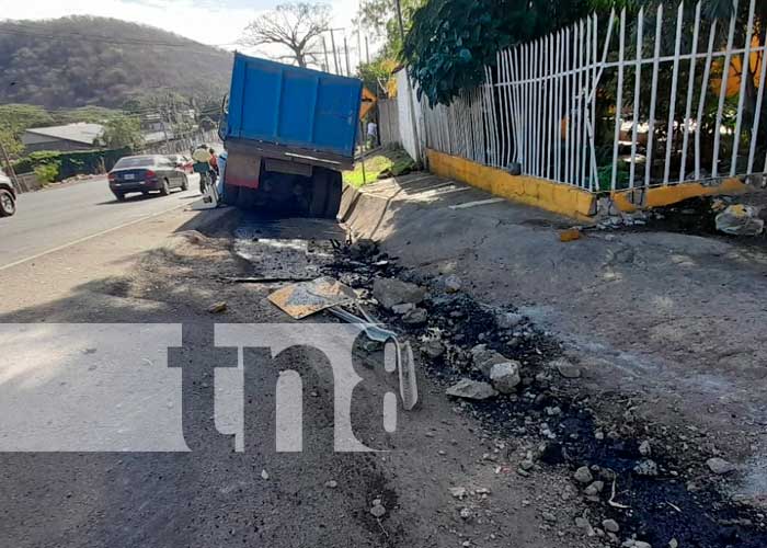 Aparentemente la dirección del vehículo pesado terminó dañada. Cabe señalar que esta peligrosa pendiente ha sido escenario de un sin número de accidentes en su mayoría trágicos.