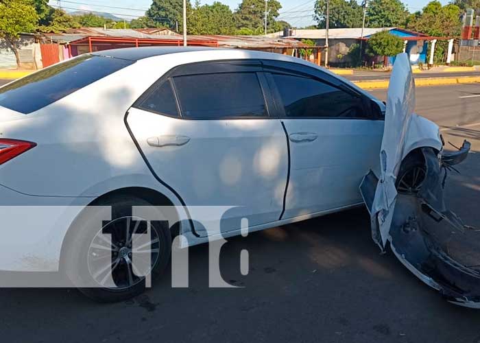 Vivos de puro milagro, resultaron ilesos una pareja que viajaban en un vehículo de color blanco con número de placa M 354 838. Este dramático incidente ocurrió en la intersección ubicada en el sector conocido como la entrada al Museo Camilo Ortega Saavedra en Masaya.