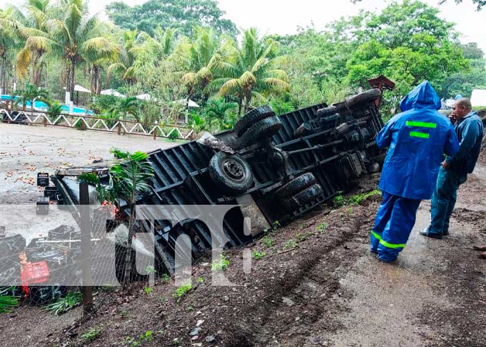 Testigos en el lugar afirmaron que el camión perdió estabilidad al precipitarse a la orilla del camino; el cual debido a la gran cantidad de lluvia registrada en esta zona del país, el suelo se ha saturado de agua.