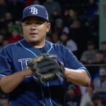 El nicaragüense Erasmo José Ramírez de Tampa Bay Rays entró a relevar en la parte baja de la séptima entrada ante los Medias Rojas...
