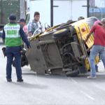 Conductor de caponera se da vuelta con todo y pasajeros en la carretera norte