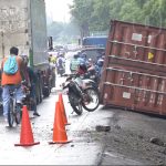 Contenedor se desprende de cabezal en Carretera Vieja a León