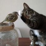 Mirá lo que hace este gatito con un pequeño pájaro