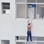 (VIDEO) Una mujer se aferra a una ventana en Brasil
