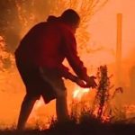 Un hombre dejó asombrado a unos motoristas por su acto de compasión para salvar la vida de un conejo en pleno incendio forestal en...